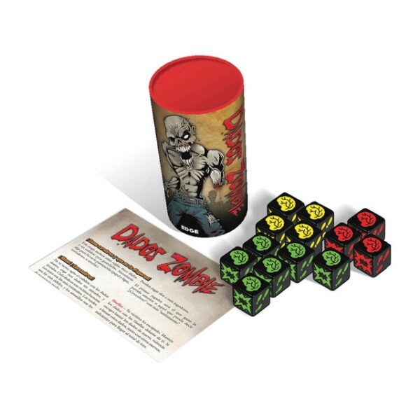 Dados Zombie es pura diversión para cualquier amante de los muertos vivientes (y para toda la familia). Los trece dados personalizados son tus víctimas. Apura tu suerte para zamparte sus cerebros, ¡pero detente antes de que los disparos finalicen tu turno!