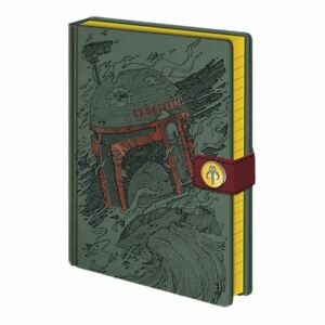 Preciosa y elegante libreta con Boba Fett en relieve en la portada. Además las páginas son amarillas y tiene un cierre rojo con el símbolo mandaloriano, como veis todo con los colores de la armadura del cazarrecompensas más letal de la galaxia !!
