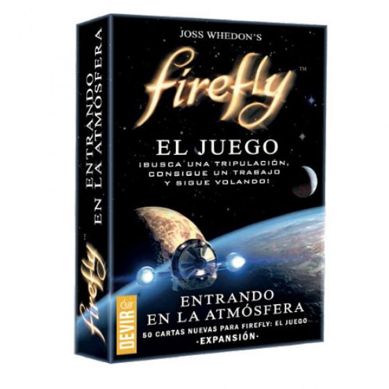 Firefly: Entrando en la atmósfera es una expansión para el juego Firefly que contiene 25 cartas de trabajo y 25 cartas de suministros. Los nuevos trabajos presentan nuevos desafíos para los capitanes y sus tripulaciones, con recompensas en base a sus niveles de habilidad, mientras que las nuevas cartas de suministros ofrecen nuevas ofertas de miembros de tripulación y equipo especial para ayudar a sus capitanes a conseguir sus objetivos.