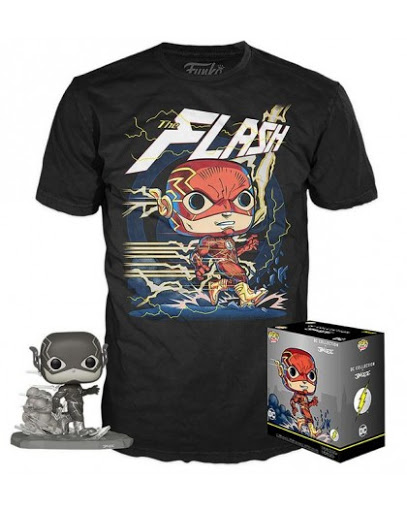Pack edición limitada que incluye una figura Funko Pop! de Flash edición limitada Movie Moment de Jim Lee y una camiseta