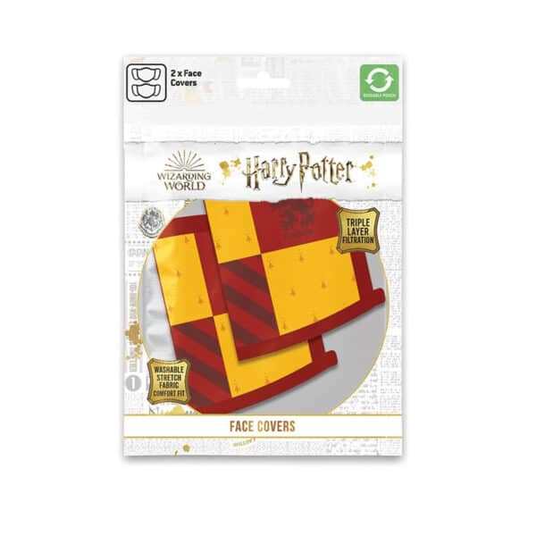 Se trata de un pack de 2 mascarillas de Harry Potter. Están hechas con algodón 100%, tienen tres capas de filtrado y puedes lavarlas a máquina a 60º sin que pierdan sus propiedades. Con esos agradables y frescos colores en la combinación amarilla y granate tan típica de la casa Gryffindor de Harry Potter.