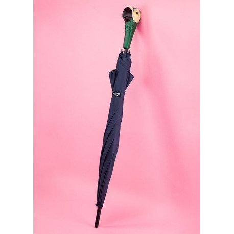 Es un paraguas de gran calidad y tamaño licenciado de forma oficial por Disney como parte del exclusivo y elegante merchandising de las películas de Mary Poppins, que estrena secuela en 2018. Es un paraguas de color azul marino, en el que está serigrafiada una de las frases más recordadas de este carismático personaje de Disney: «Practically Perfect in Every Way». Pero si por algo destaca este paraguas es por su mango o empuñadura, con ese inconfundible loro de color verde, igualito que el de la película original.