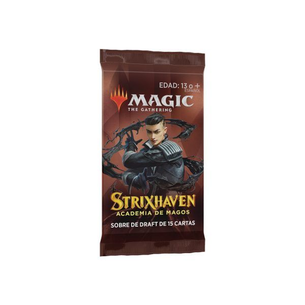 Cada sobre contiene 1 carta de Mystical Archive (poco común, rara o rara mítica), 1 carta de Lección (común, rara o rara mítica), 1 carta rara o rara mítica, 3 poco comunes y 9 comunes. Una carta foil tradicional de cualquier rareza sustituye a una carta común en el 33 por ciento de los sobres de Draft de Strixhaven y una carta rara mítica foil tradicional de Mystical Archive puede conseguirse en menos del 1 por ciento de los sobres.