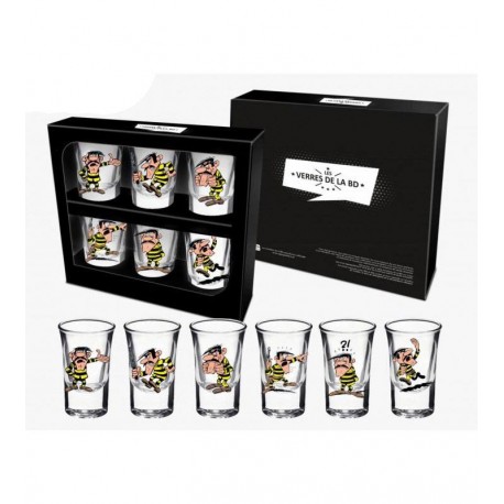 Set de seis vasos de chupito de Lucky Luke: Joe Dalton. El vaso es oficial y licenciado.